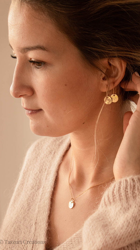 Inspirés des tatouages berbères féminins, tous nos bijoux sont le fruit de la collaboration entre Taszuri et Jen de La Jungle Bijoux, artisane bijoutière qui fabrique nos bijoux à la main à Barcelone.