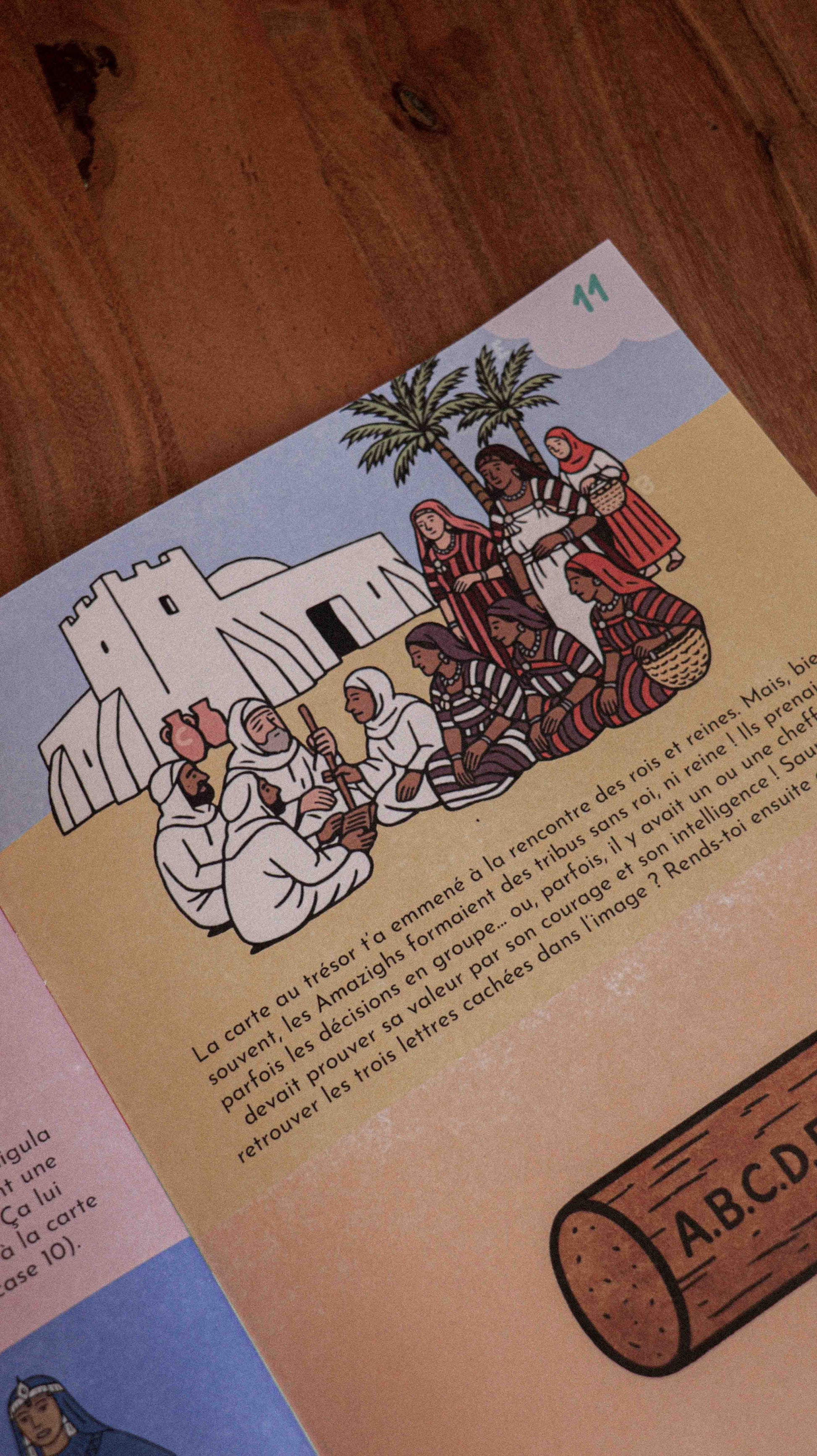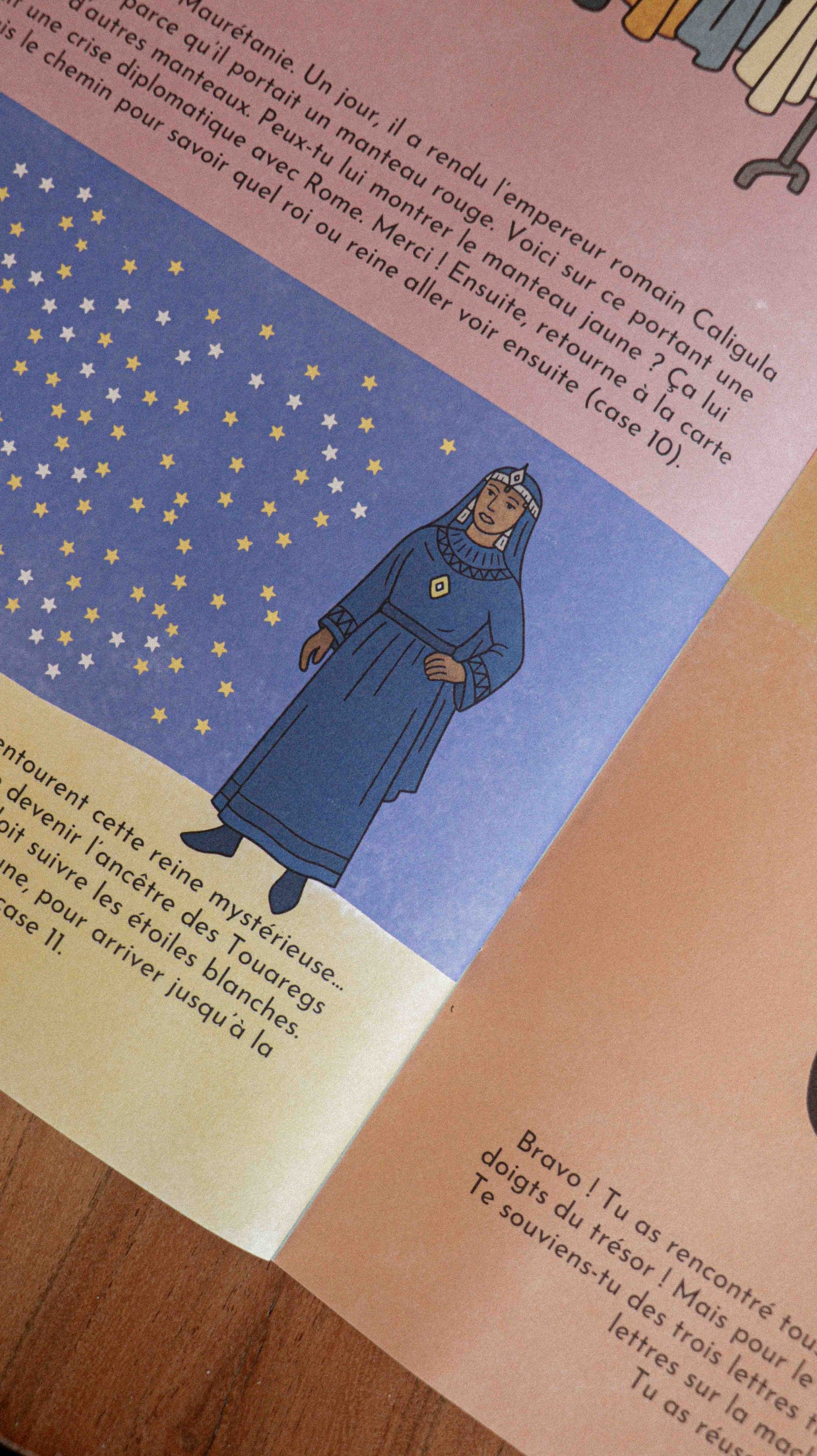 - une grande aventure sous forme de carte au trésor, pour partir à la rencontre de 10 rois et reines amazighs de l’Antiquité