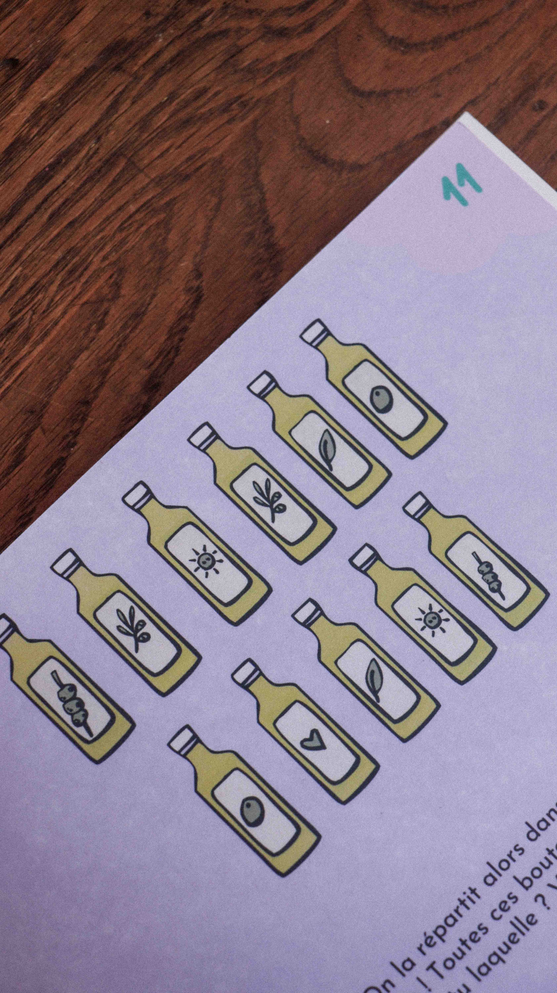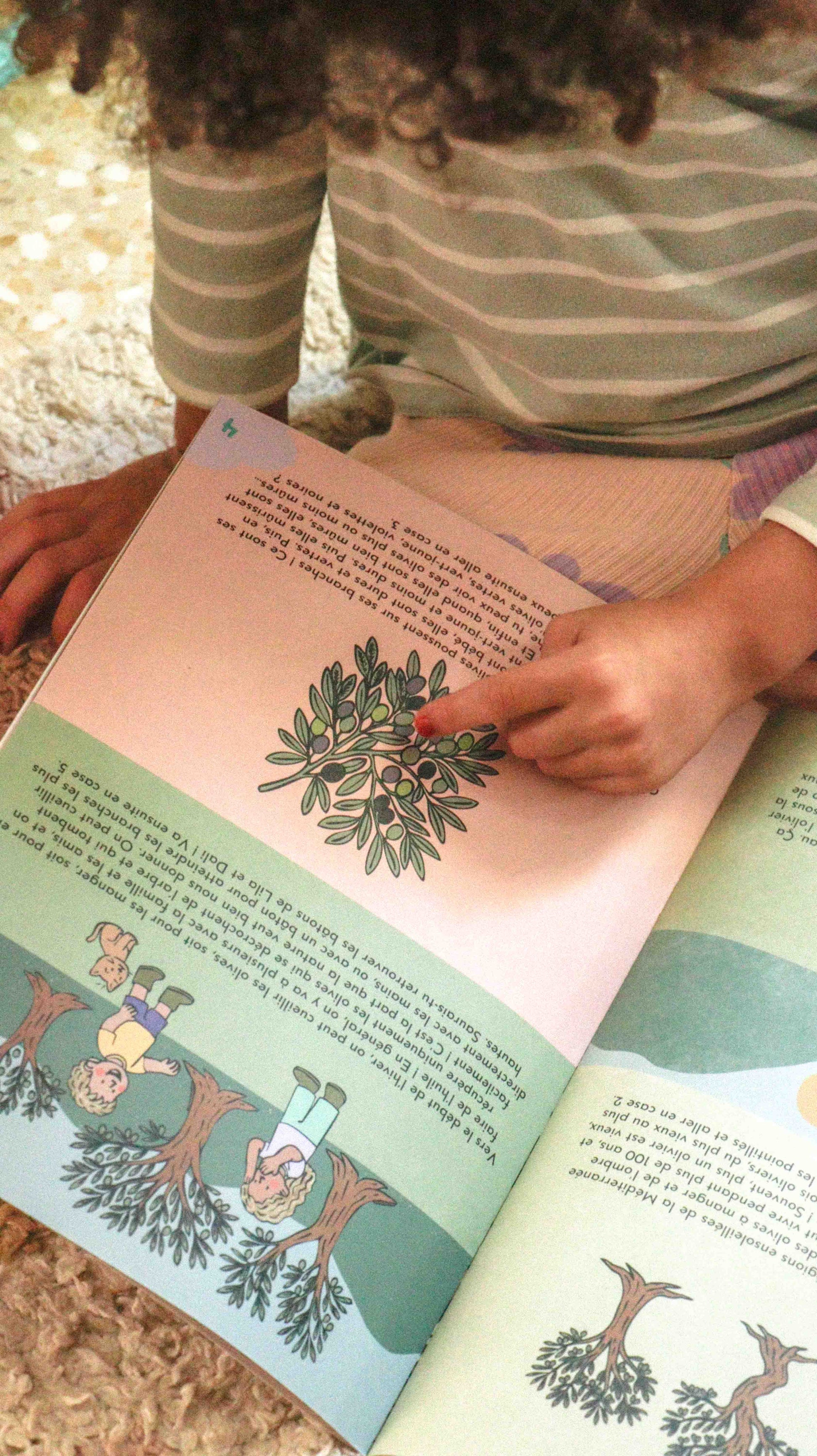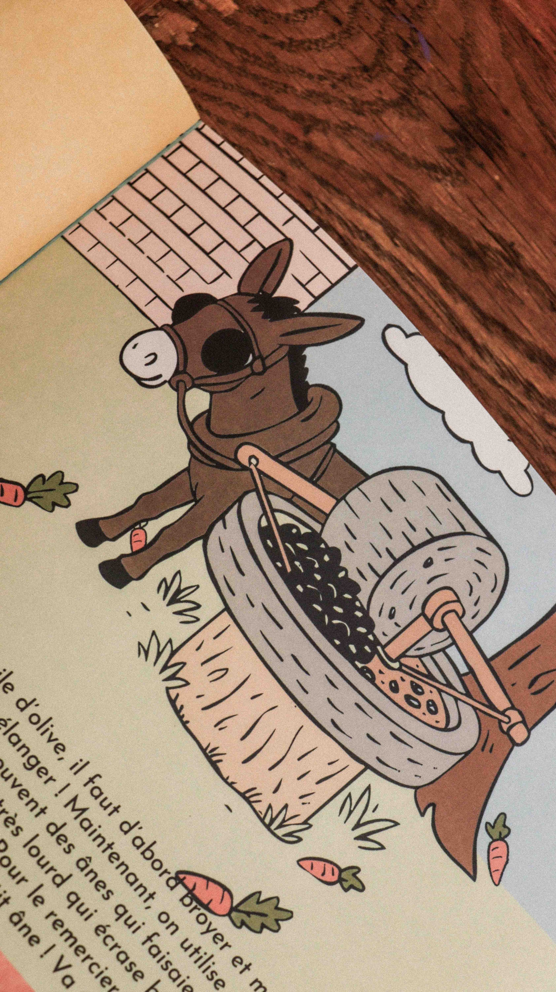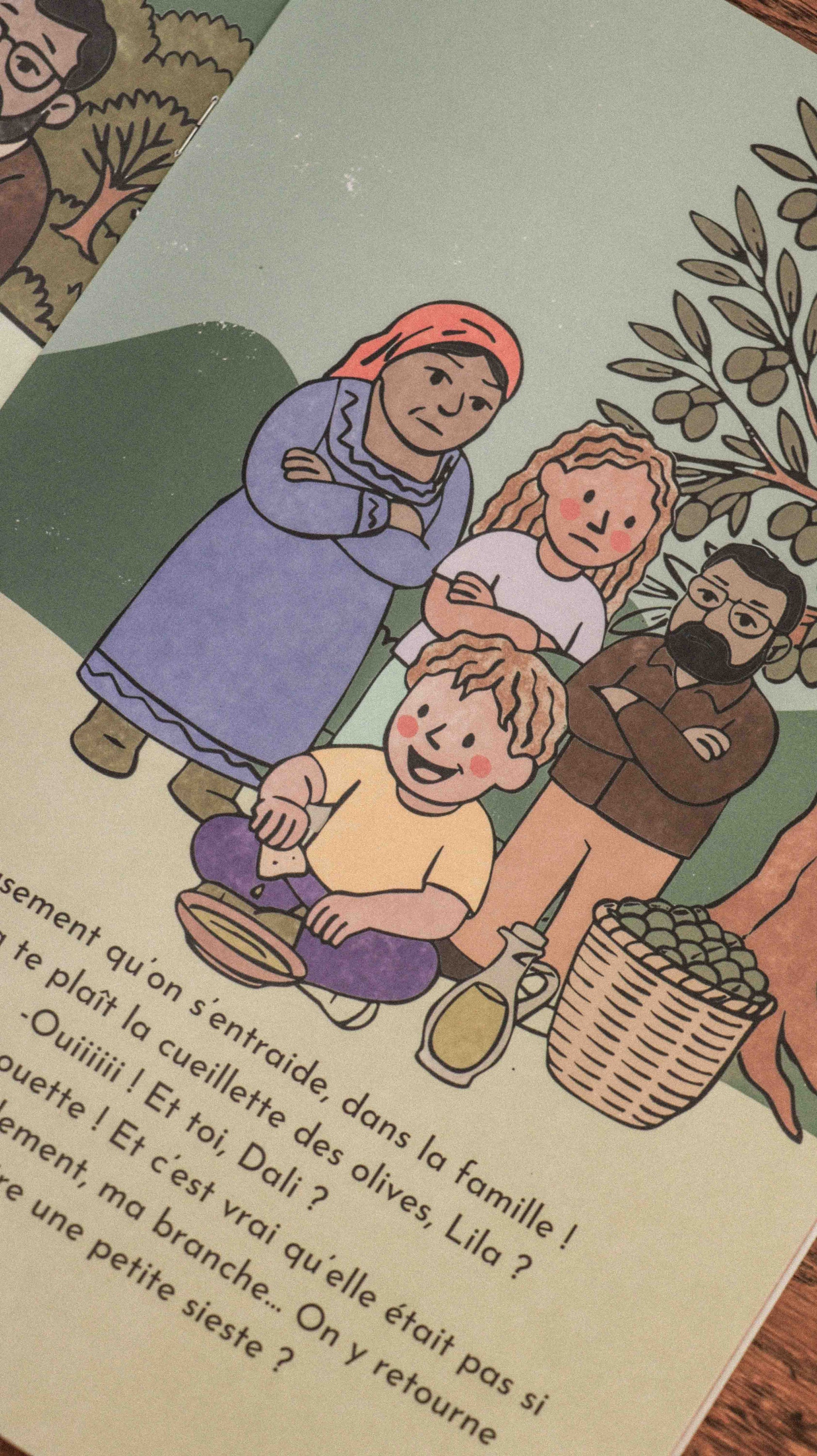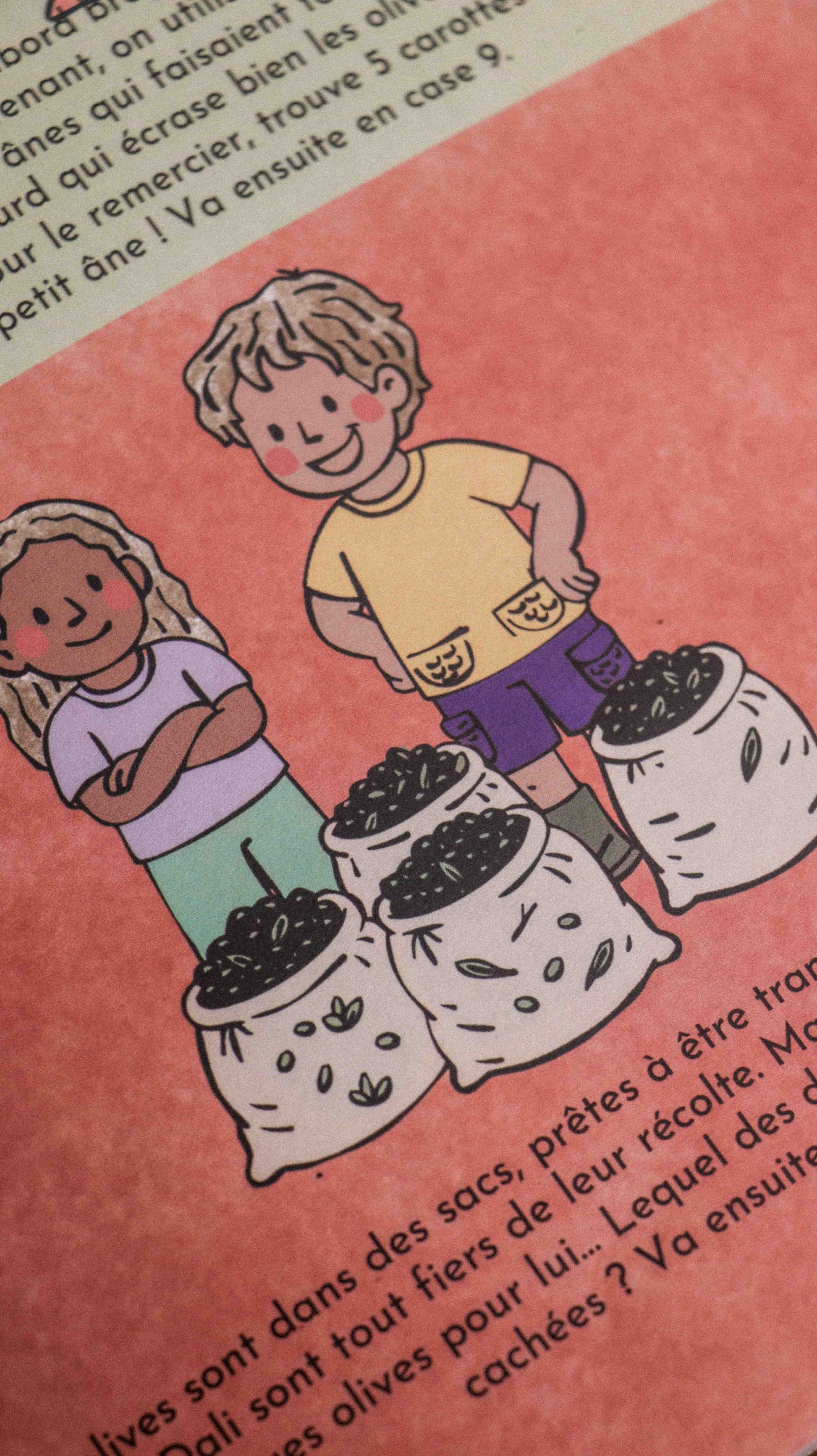- une grande aventure qui fait découvrir le thème du numéro. Ici, Lila et Dali apprennent comment fabriquer de l'huile d'olive avec leur oncle Tarik. De la cueillette à la dégustation en passant par le pressage et la mise en bouteille... les enfants découvrent chacune des étapes nécessaires à la fabrication de l'huile d'olive.