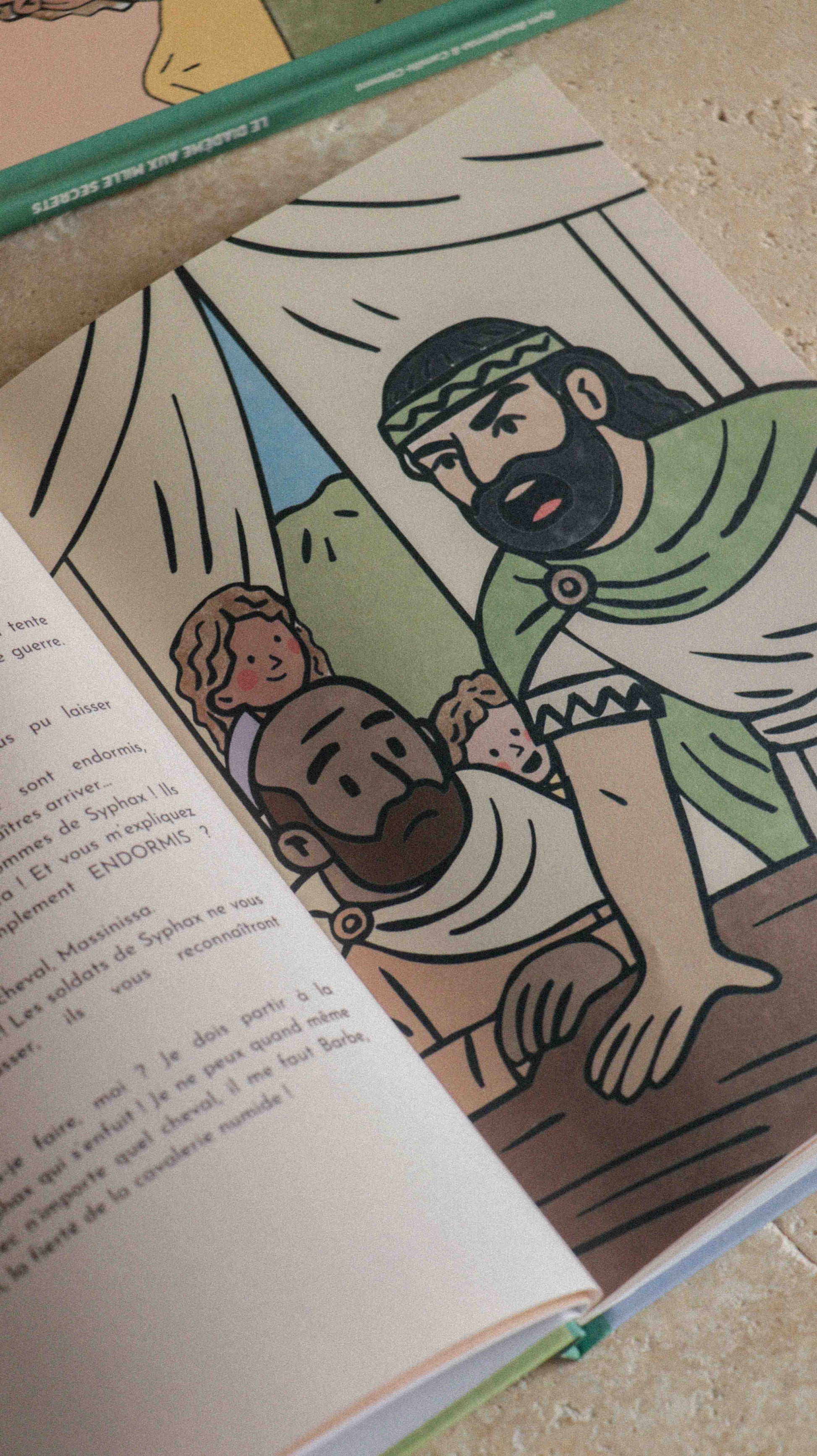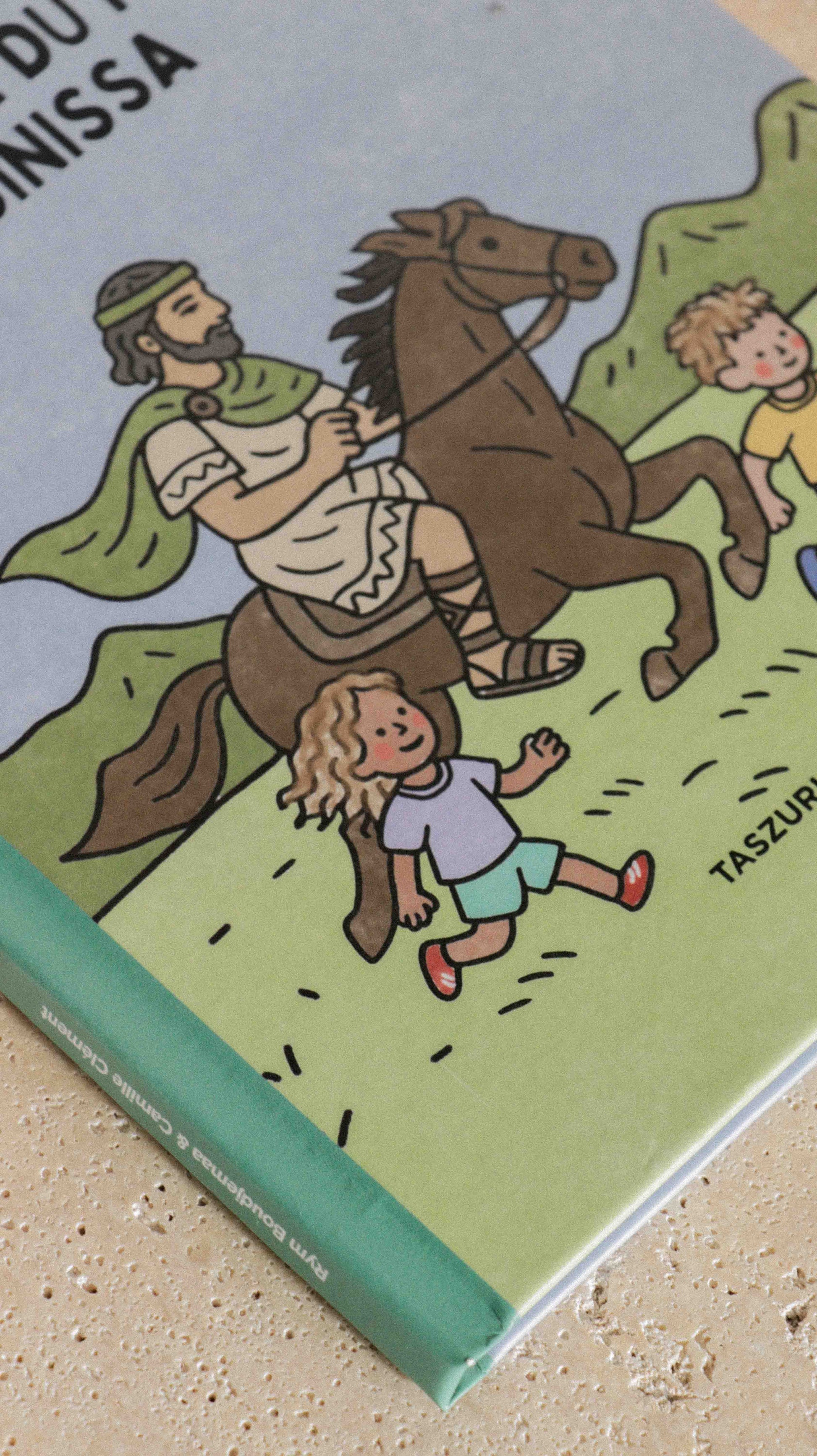 C’est une histoire tendre et pleine d’action, inspirée du monde numide, qui fait découvrir aux enfants Massinissa, ses chevaux barbes et un morceau d’Histoire amazighe, mais toujours à hauteur d’enfant.