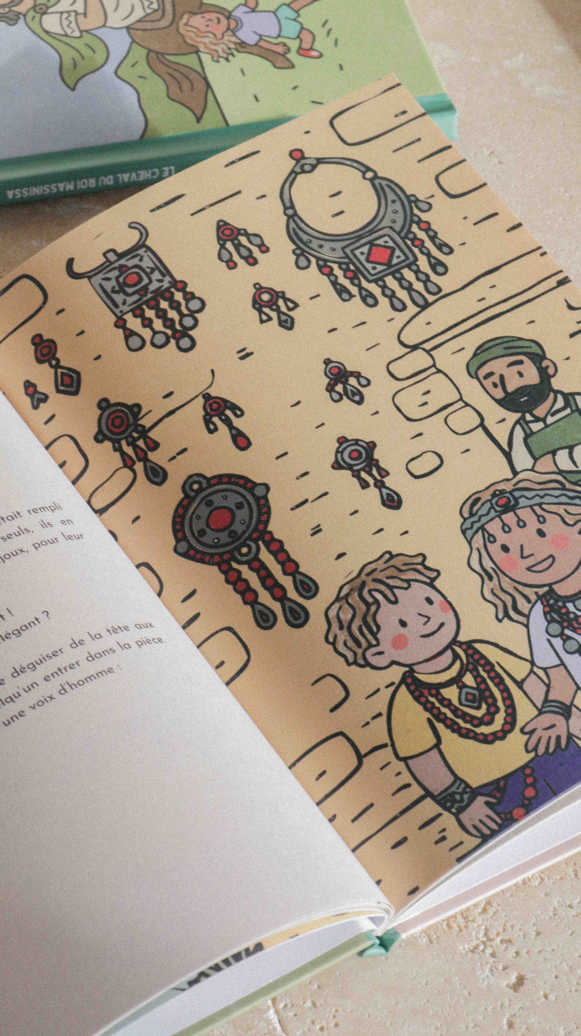 Parce que les bijoux amazighs sont porteurs d’histoires, de symboles et de gestes anciens, mais qu’ils sont rarement racontés aux enfants. On voulait une aventure qui donne envie de découvrir ces savoir-faire sans être scolaire, à travers un récit chaleureux, mystérieux et plein de couleurs.